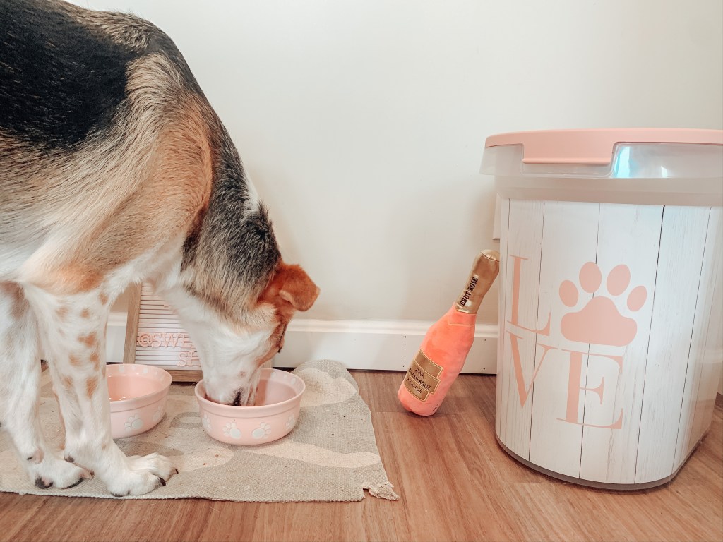 I’ve wanted to be a dog mom for YEARS, and finally having my very own fur-baby has been a true dream come true! My shepherd-collie-beagle rescue is seriously a girl’s best friend and I love every big stretch and yawn, and the way she stomps her paw with attitude or grabs my arm with her paw for pets. Let’s be honest though: in order to keep the cuteness in check and not in chaos, we need to be ORGANIZED as pet parents. If you could save those five minutes every day chasing down the treats for the treat ball or the water additive to keep that bad breath at bay, you would want to, right? That was my EXACT motivation behind her new puppy corner!