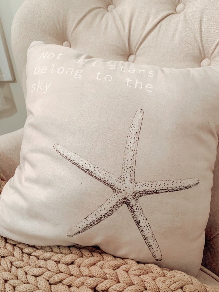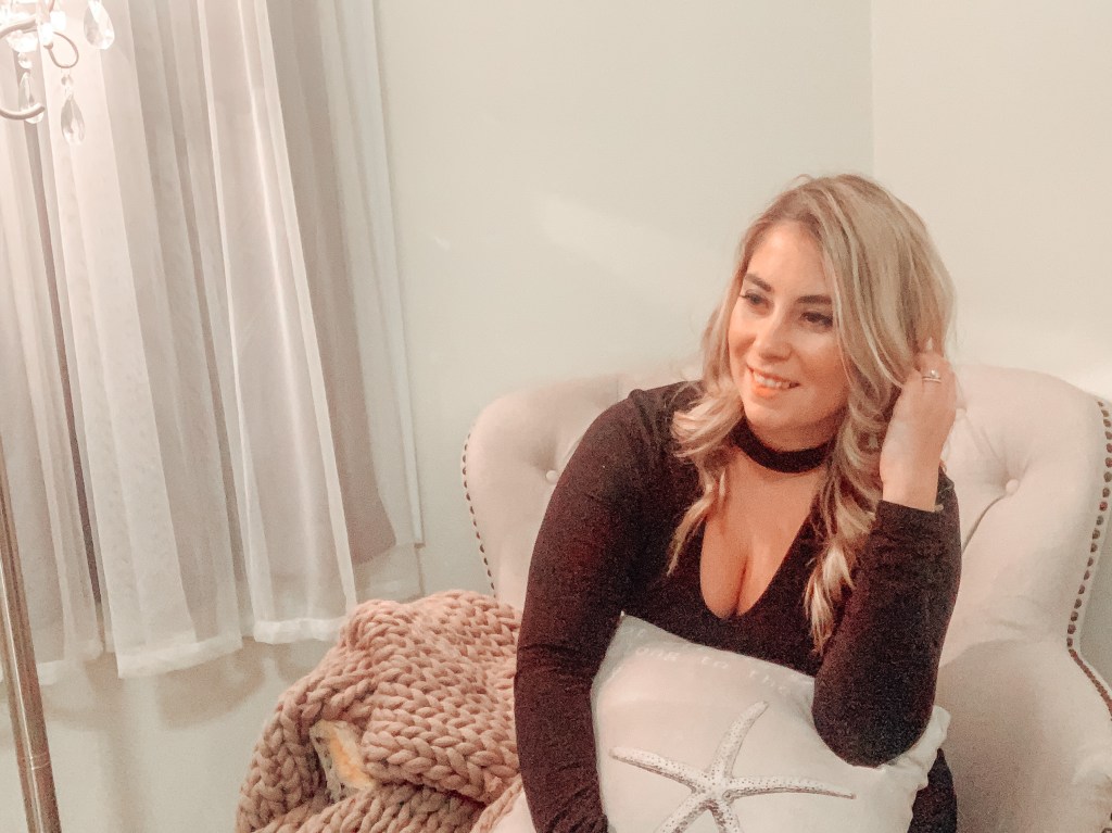 Personally, having a grey/white bedroom, I chose to take a grey chair to pair with a chic silver chandelier lamp , my favorite throw pillow and a cozy blanket knit by my sister-in-law. Before you know it, BAM! This simple space is done. While it does take a bit of investment into selecting the right chair/lamp combo, it’s an easy solution to adding extra space for guests while also giving you a comfortable place to relax at the end of a long day.