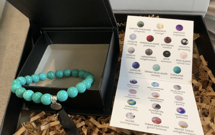 Once I opened up my box, the first thing I saw was a beautiful picture of Tricia and her daughter Savannah on a postcard that tells the story of how S Design Jewelry all began. This is an important personal touch: not only because if you are giving it as a gift they are able to get some background on the brand, but it’s also a reminder that you’re supporting a small business that is grateful for each and every sale. Underneath the postcard was a second personal touch: a thoughtful, handwritten note letting me know the inspiration behind this month’s theme: intention & protection.